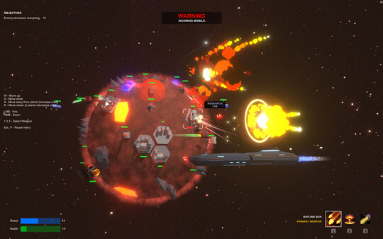 Orbital Bombardment, developed by Banibot Games, published by Banibot Games. This game have is Action category. Orbital Bombardment is a unique space shooter game, with retro vibe and synthwave music. You orbit around planets and bombard the evil aliens to save the galaxy. Use different space ships with unique weapons to your tactical advantage to defeat the planetary defenses and to destroy the enemies.
