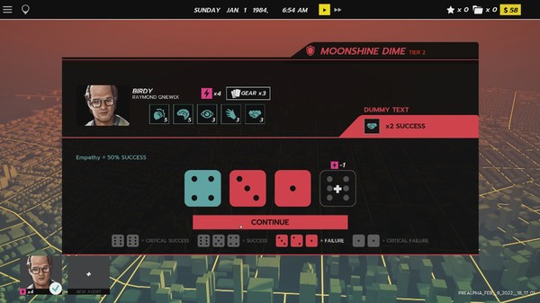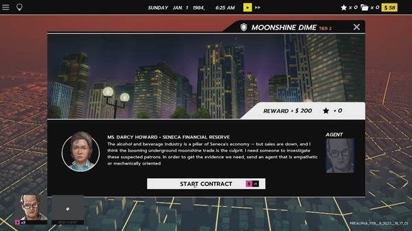 Rough Justice: ’84, developed by Gamma Minus UG, published by TBD. This game have is Adventure, Casual, Indie, Simulation, Strategy category. Do what it takes to make your fledgling security agency thrive. Advise your team on the best course of action, through strategy, calculated decisions, and a bit of luck. Use dice and cards to turn the odds in your favor in this neon ’80s boardgame-inspired management game.